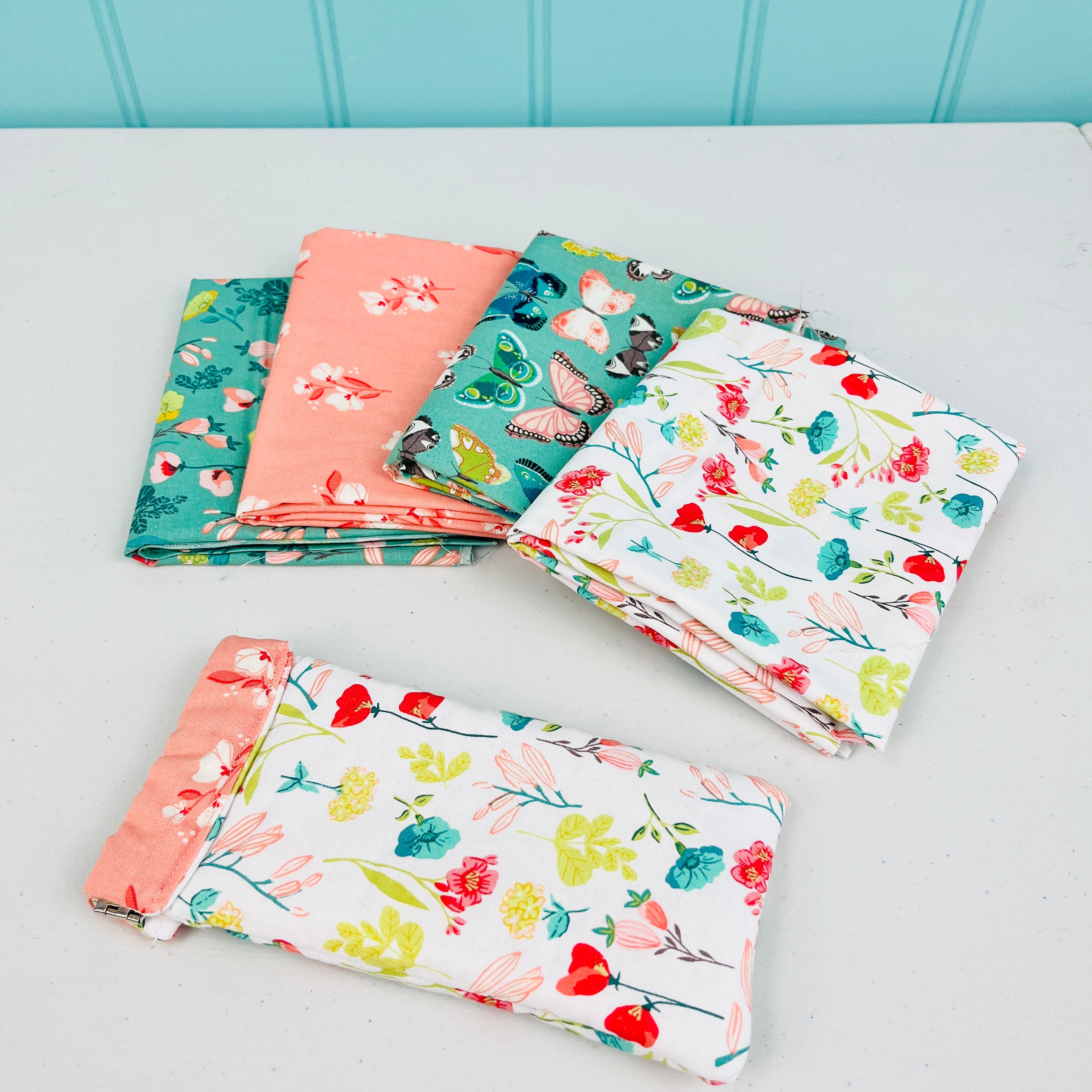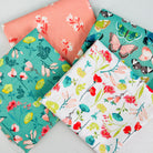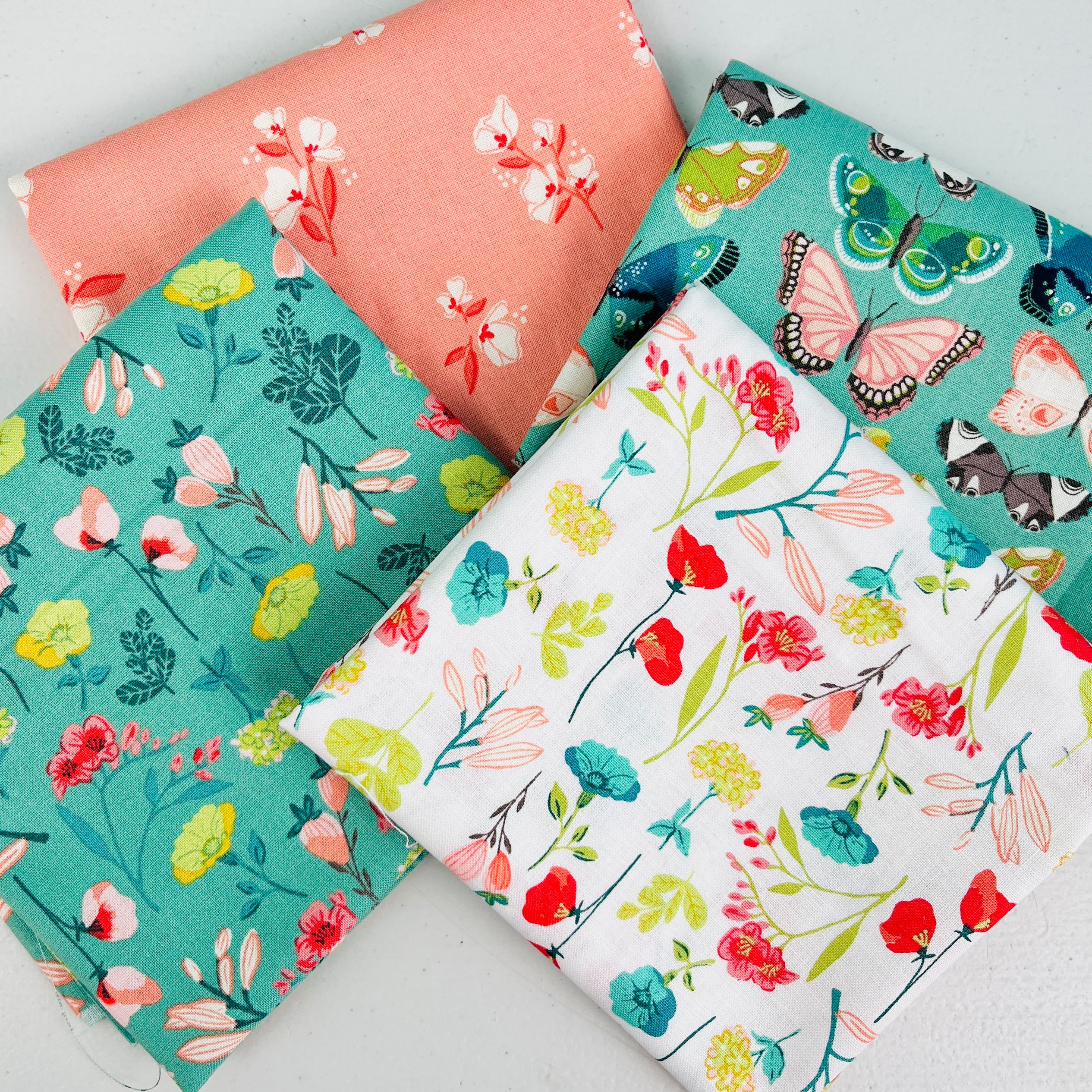 Step into the wild meadows of summer with a refreshing floral collection from Riley Blake. In a more unusual colour palette of peach, white, coral and jade green, wild flowers and butterflies abound.