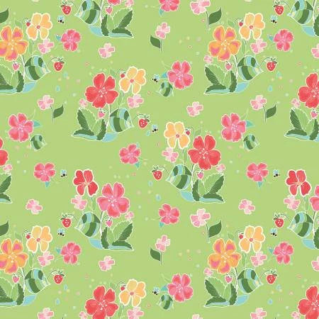 Bring the outside in, with this fresh and breezy collection from Riley Blake. Full of vibrant greens, rich reds and zesty hints of orange, the floral designs are complemented with cute strawberries and bees. This bold floral print in a zingy lime green is definitely one for those who love colour!
