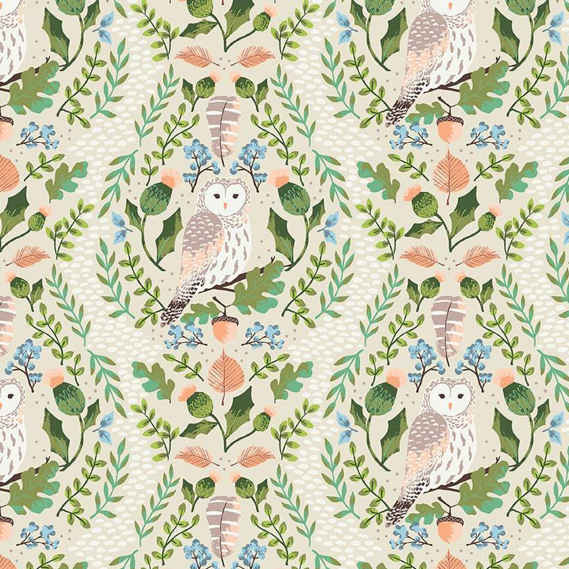 In this sweet collection from Riley Blake, we celebrate the joy of wild woodland life! This busy print features the stunning flora and fauna that grows wild in the woods, with some majestic owls hiding away in the depths for a unique but gorgeous print. Great for quilts, patchwork, accessories, clothing and more!