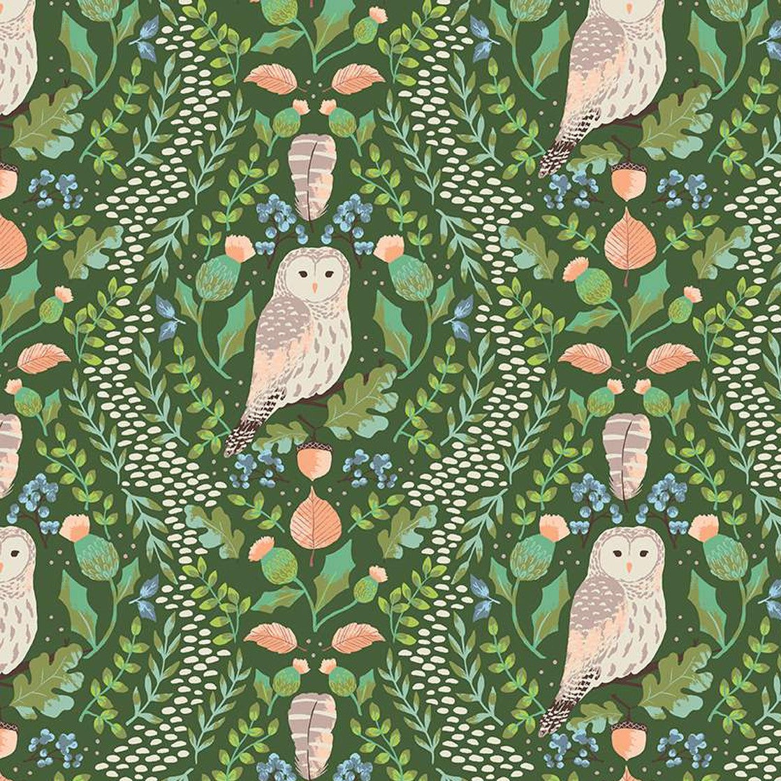 Riley Blake Wildwood Wander - Hidden Owl Green - 100% Cotton Fabric