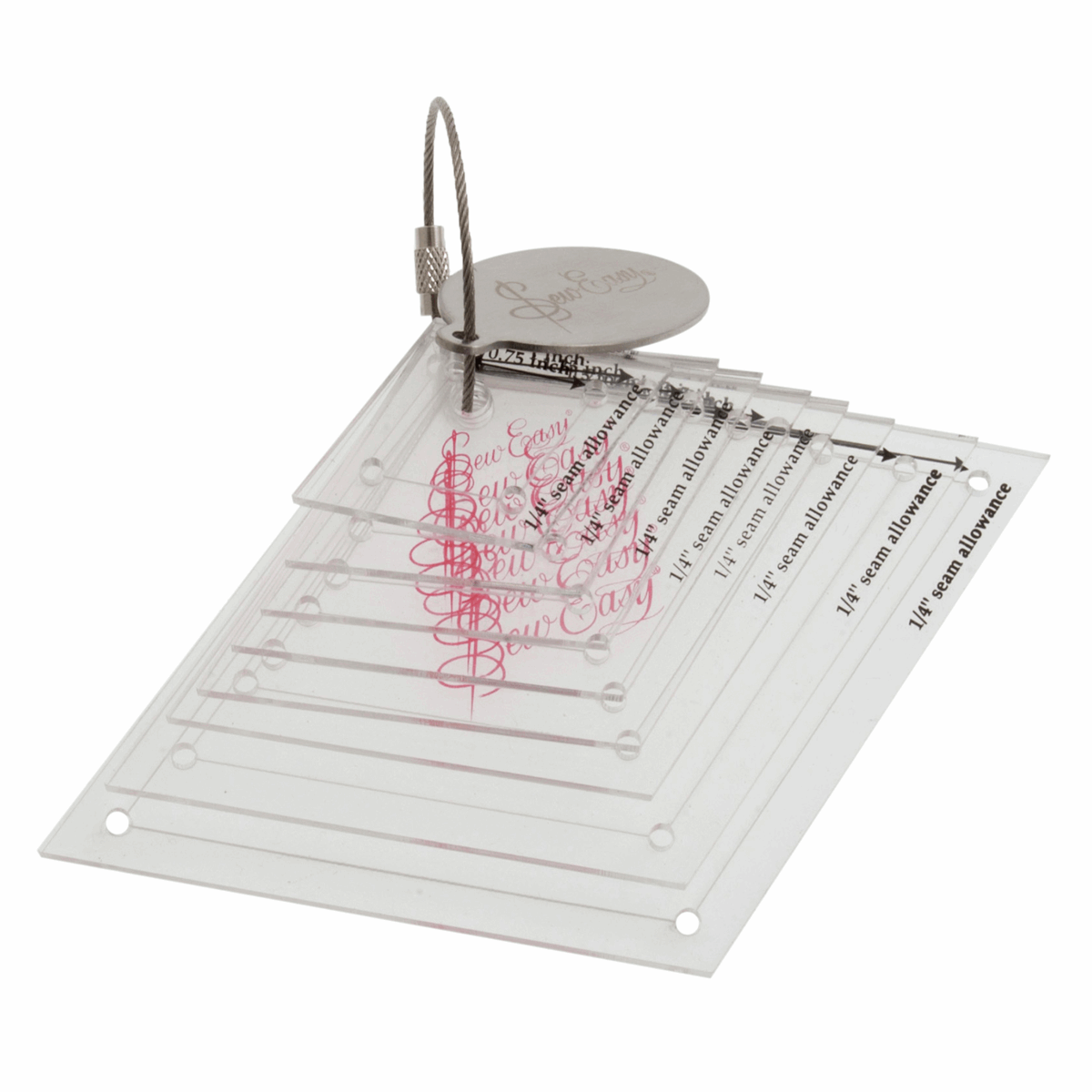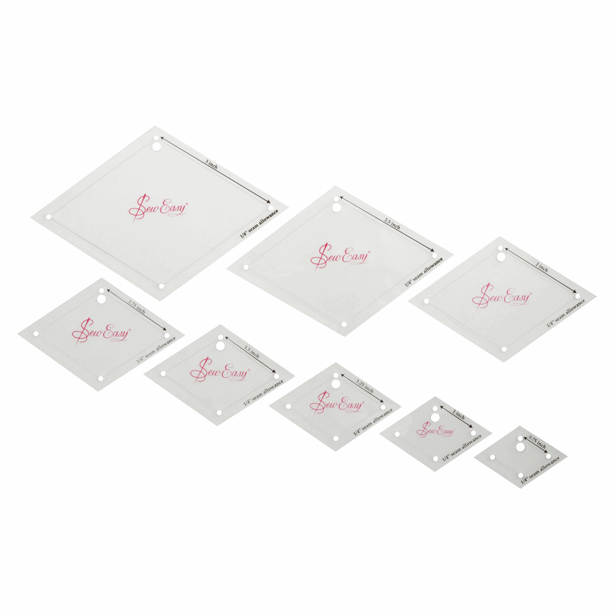 Cut quickly, accurately and professionally with a set of acrylic templates. This set features a range of different size diamonds varying from 0.75" to 3" in size, all with an in-built seam allowance of 1/4" for making life easy. They are completely clear which makes them easy to use, and feature little holes that are ideal for hanging them upon hooks or keyrings, as well as ease of marking your seam allowances.
