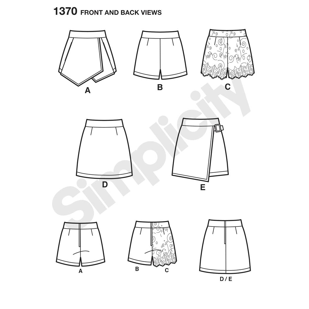 Simplicity Sewing Pattern 1370 - Women's Shorts, Skort and Skirt