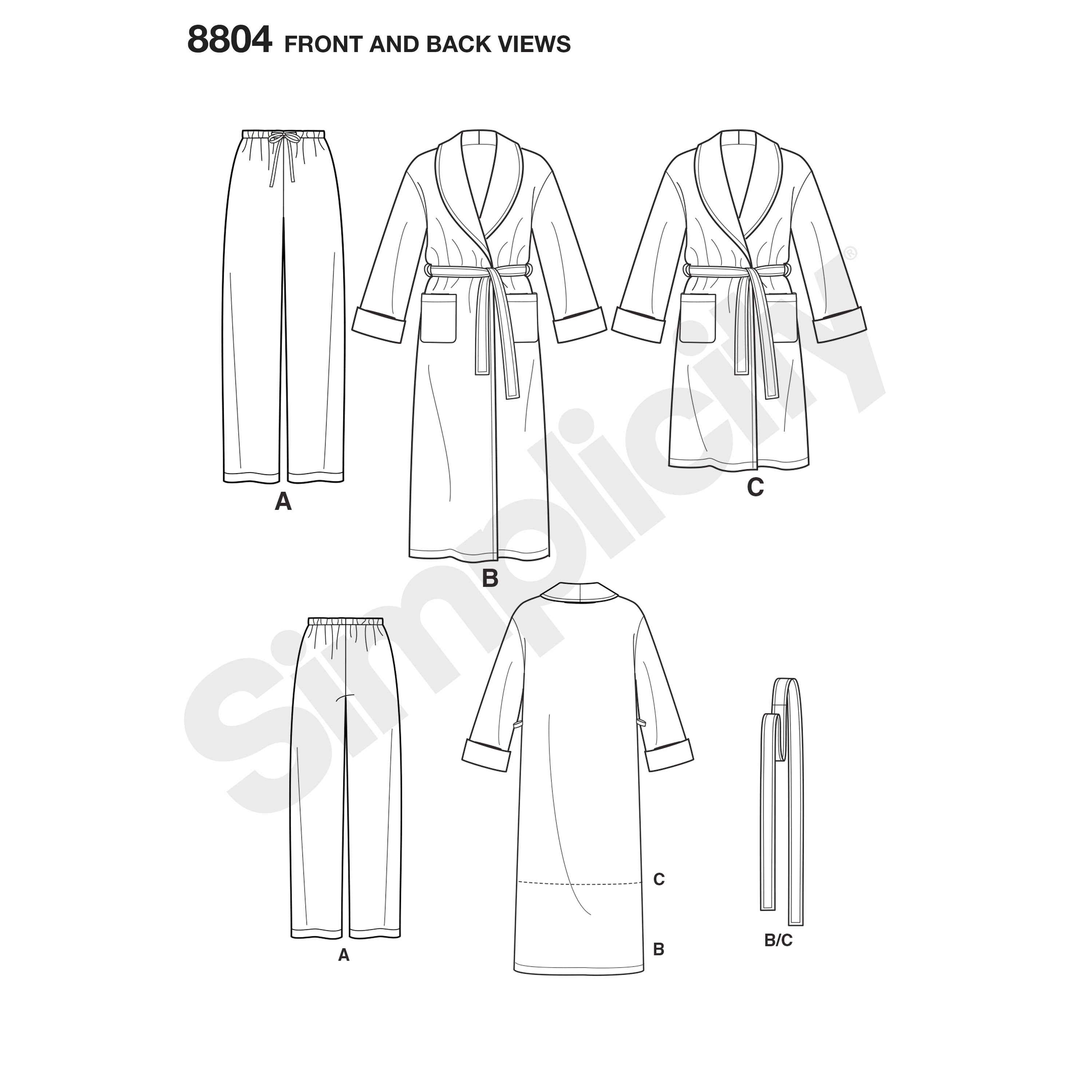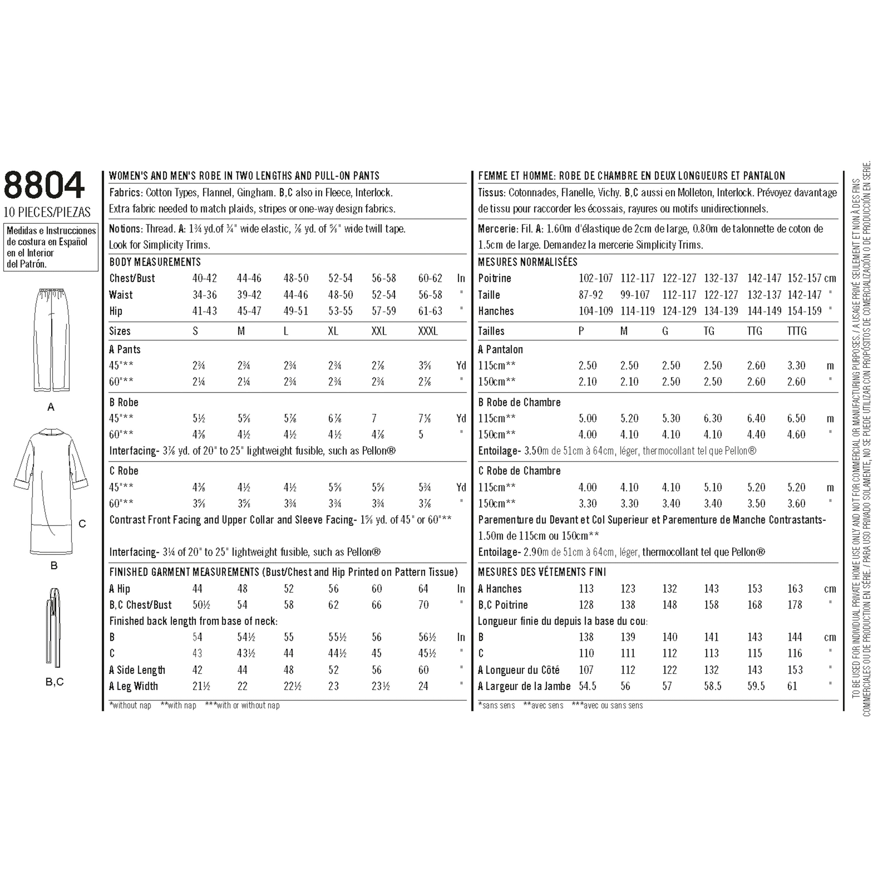 Simplicity Sewing Pattern 8804 - Women's and Men's Robe and Pants