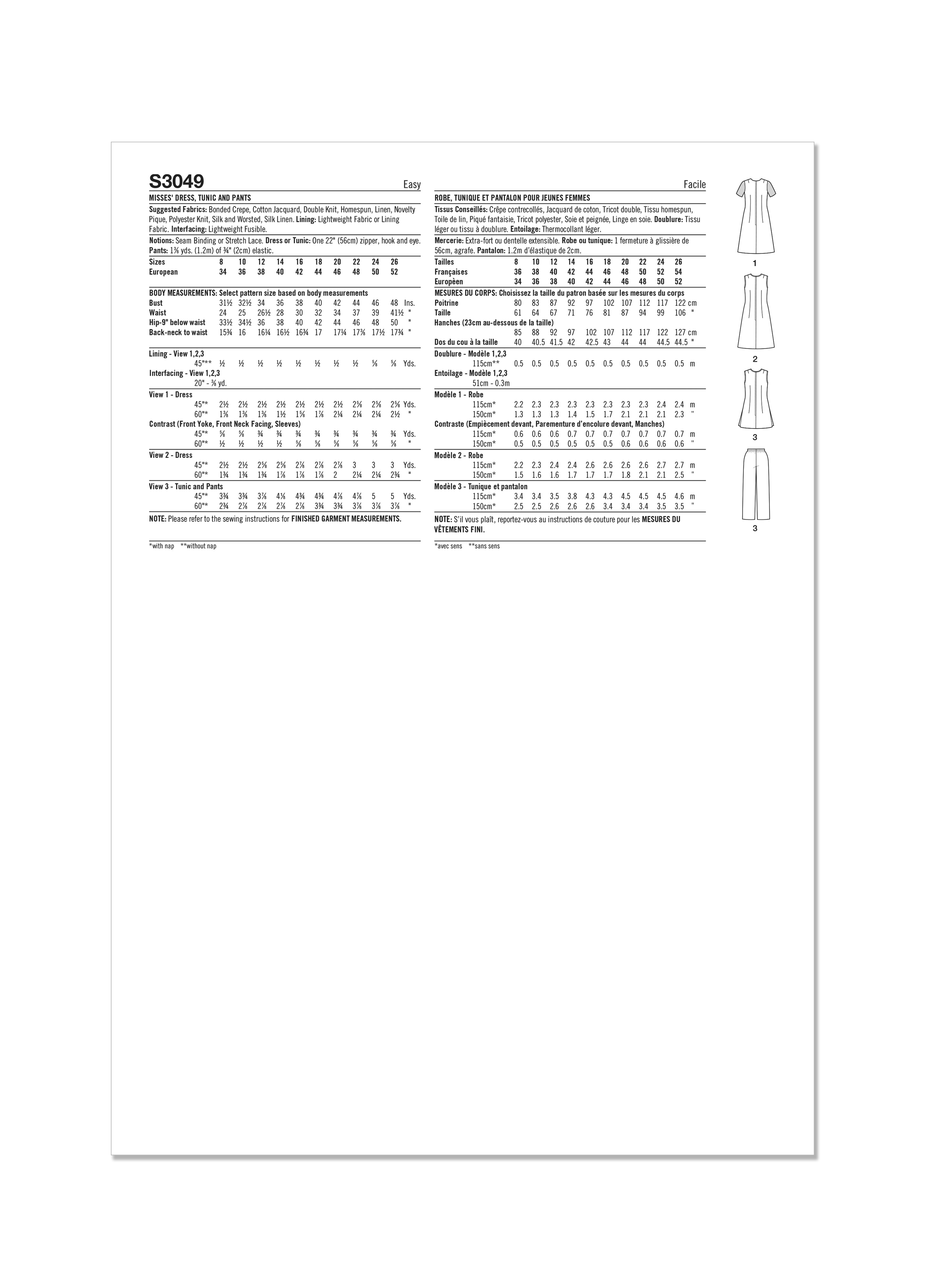 Simplicity Sewing Pattern S3049 - Misses' Dress, Tunic and Pants
