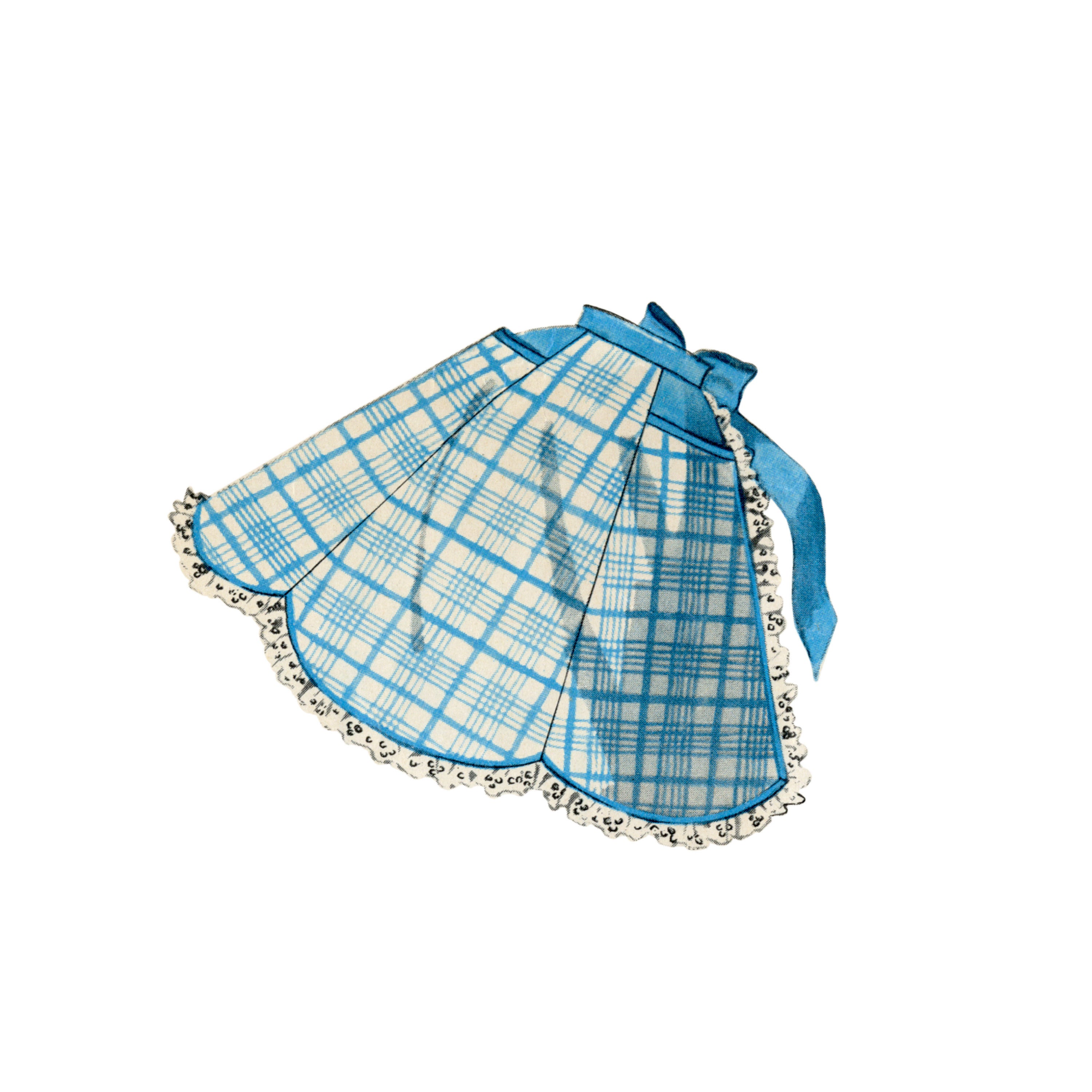 Charming aprons direct from the simplicity archives have irresistable 1950's style. A, B have shaped hems & cleverly inset pockets. C, D have circular skirts with scalloped hems & pretty lace or ribbon rose trim. Misses' sizes S-M-L.