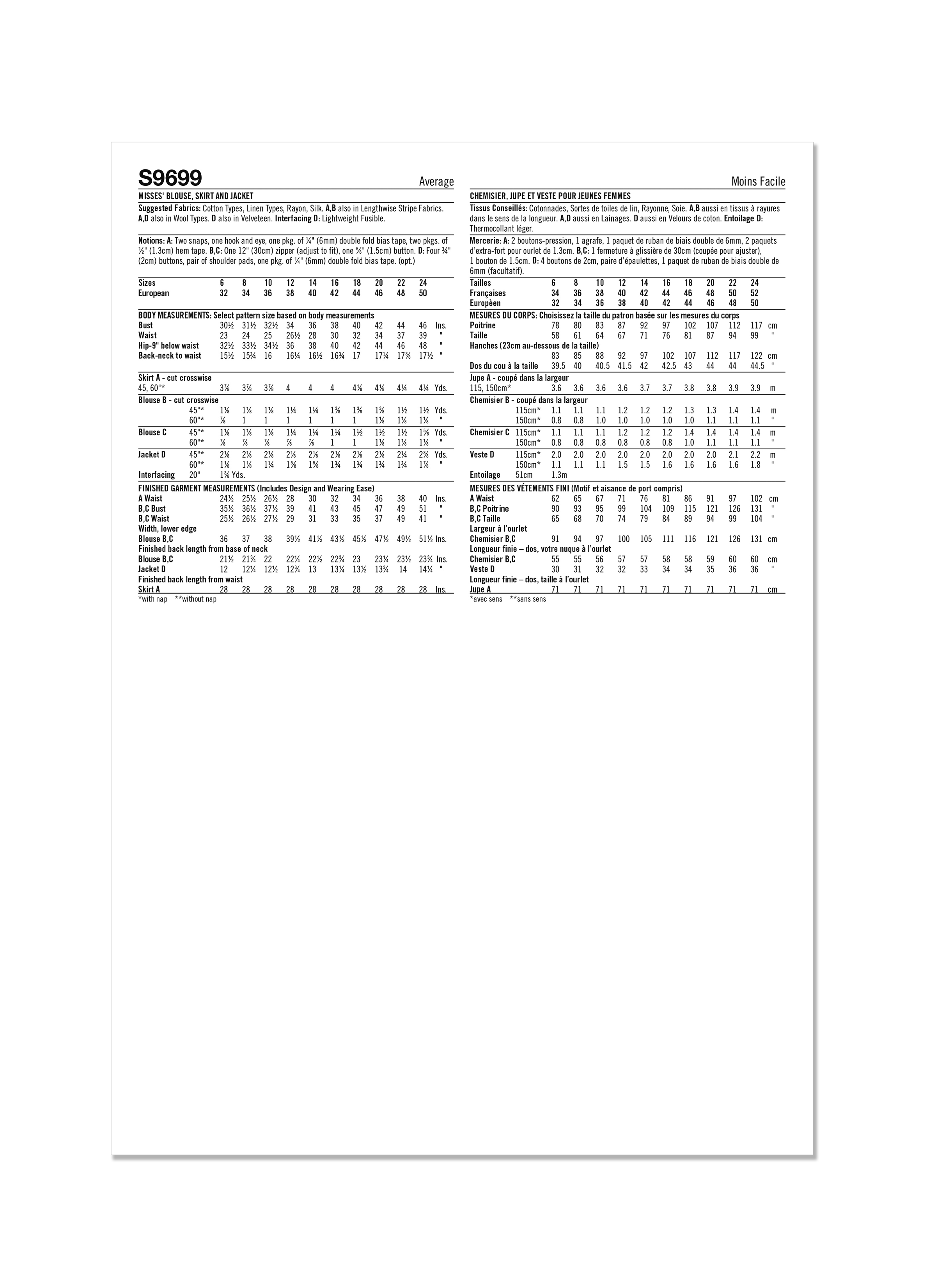 Simplicity Sewing Pattern S9699 - Misses' Vintage Skirt, Blouse and Jacket