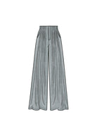 Short or long sleeve button down shirt and high waisted wide leg pants with cutting line for shorts have pleats, pockets and fly front opening.