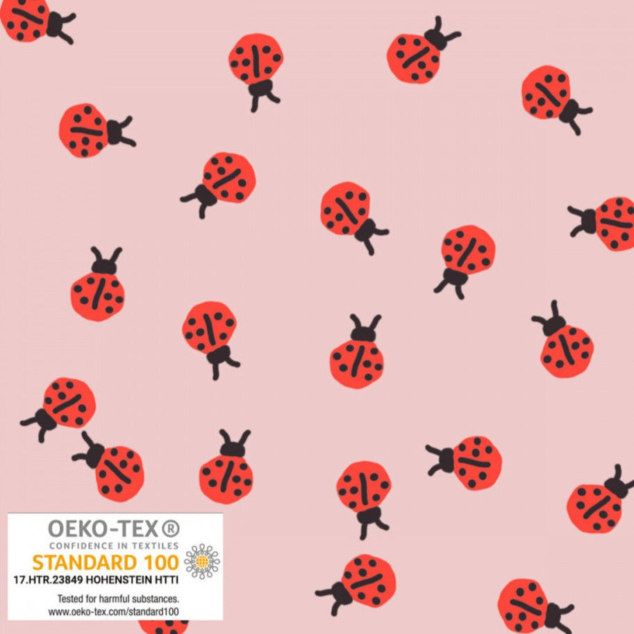 This cute print features classic ladybirds on a dusky pink background, with it's 4-way stretch is ideal for everything from t-shirts and tops to leggings and dresses.