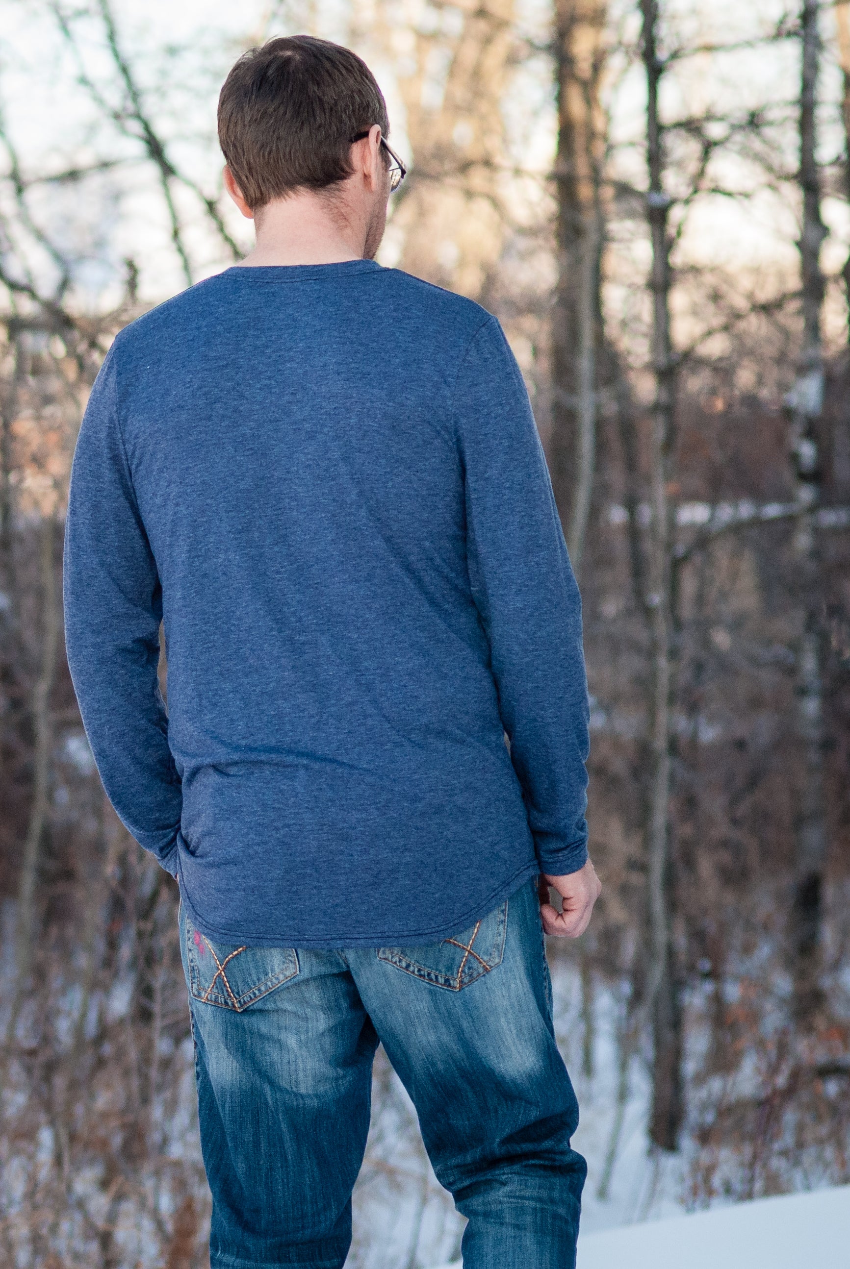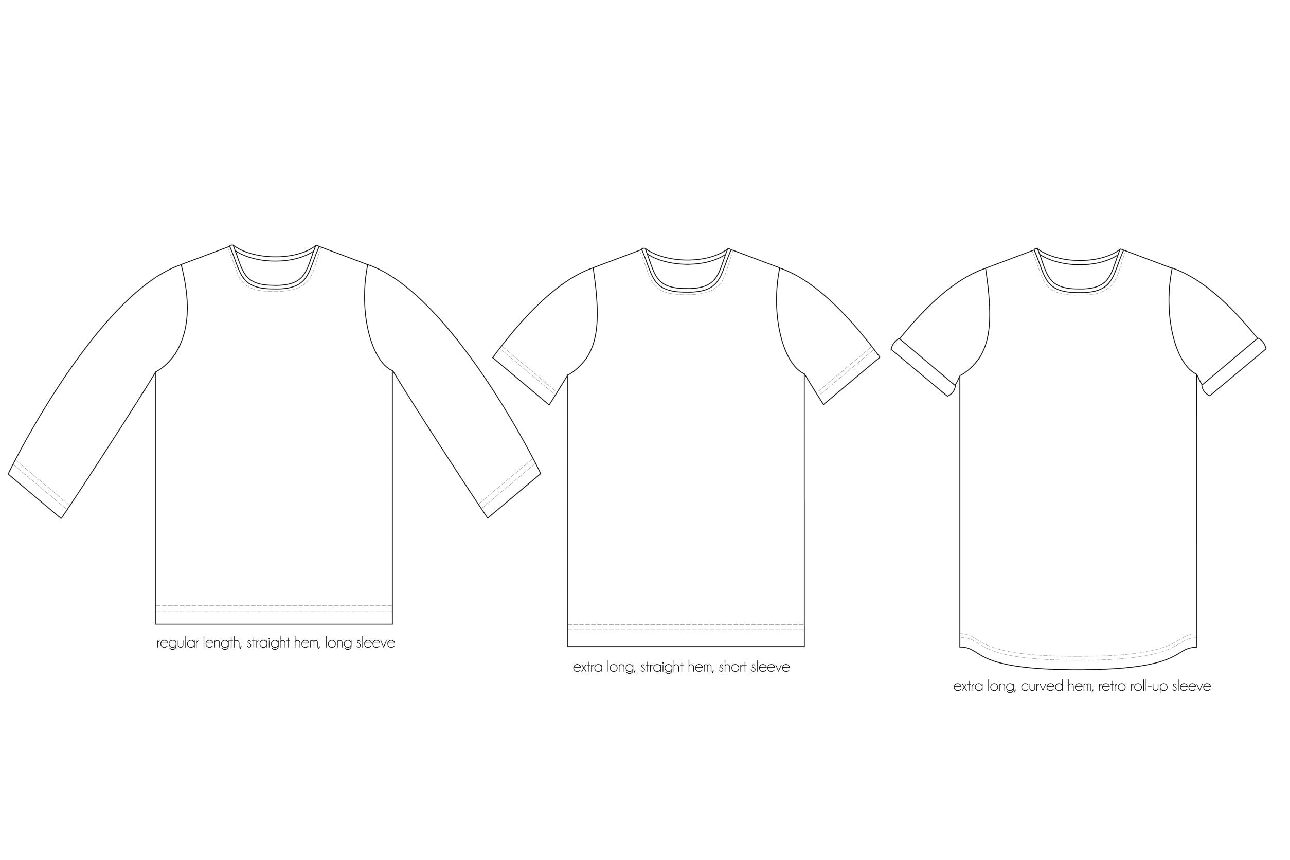 The Longboard T-Shirt has a relaxed fit with very gentle shaping. It’s suitable for all, but designed particularly for those who enjoy a little more length in their t-shirt. There are options for a regular length t-shirt with a straight hem, an extra length t-shirt with a straight hem, or an extra length t-shirt with a curved hem. Additionally, there are 3 sleeve options. There are instructions to guide you through lengthening/shortening to fit.