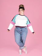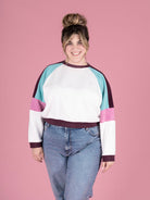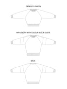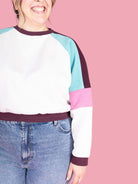 The easy-fitting style and raglan seams of Drew make for a speedy and satisfying sew, and a perfect introduction to sewing with stretch knit fabrics. Keep it simple with one solid colour or print, or let your creativity loose with the playful colour block sleeve (great for using up those weird amounts of fabric leftover from other projects)!
