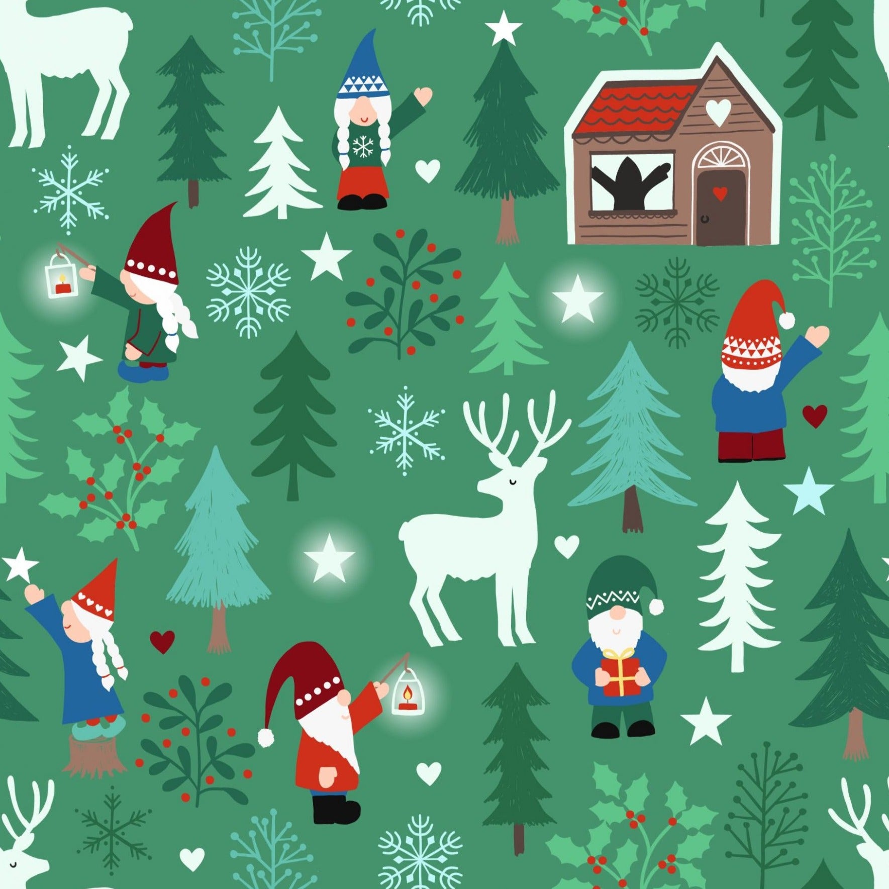 Lewis & Irene Hygge Glow - Tomte Forest Green (Glow in the Dark) - 100% Cotton Fabric