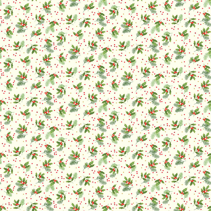 Makower Christmas 2021 Classic Foliage - Holly Spray Cream (metallic) - 100% Cotton Fabric