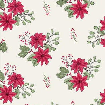 Debbie Shore is back with another set of adorable prints for the festive season, that can't help but bring us some Christmas joy! A sweet collection based around a selection of cute Christmas characters, from foxes to bunnies, ducks to otters, all dressed up for the season. This simple floral print features the festive foliage everyone knows and loves for Christmas time, the poinsettia, set on a warm cream background.- Brand: The Craft Cotton Co.