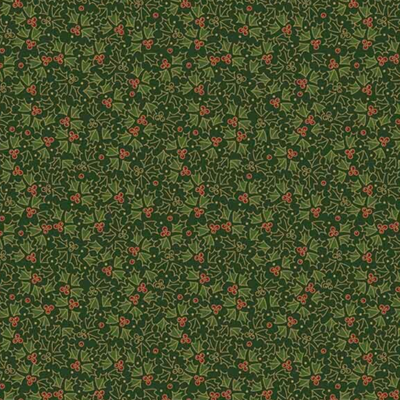 The Craft Cotton Co Traditional Holly - Holly Green (metallic) - 100% Cotton Fabric