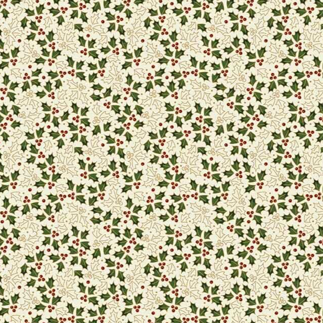 The Craft Cotton Co Traditional Holly - Holly Cream (metallic) - 100% Cotton Fabric