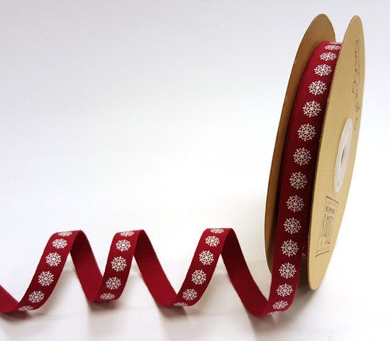 10mm Red Snowflake Cotton Ribbon