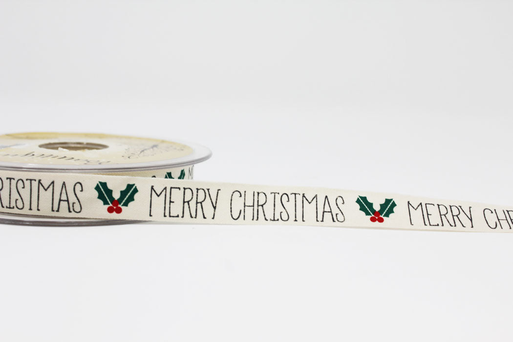 15mm Merry Christmas Holly Ribbon