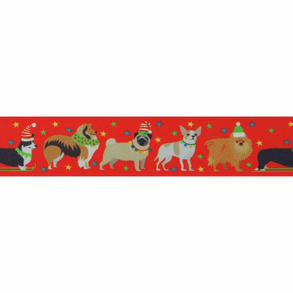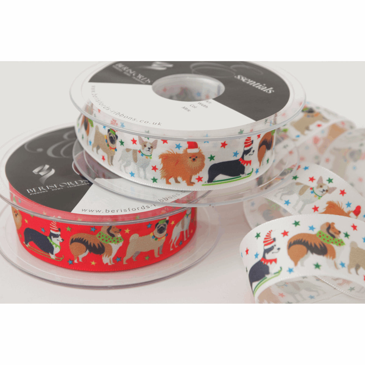Who can resist this fun doggy themed ribbon? Add a bit of novelty to your Christmas sewing and wrapping with this cheeky festive pets ribbon, featuring a your favourite pooches in their Christmas gear!