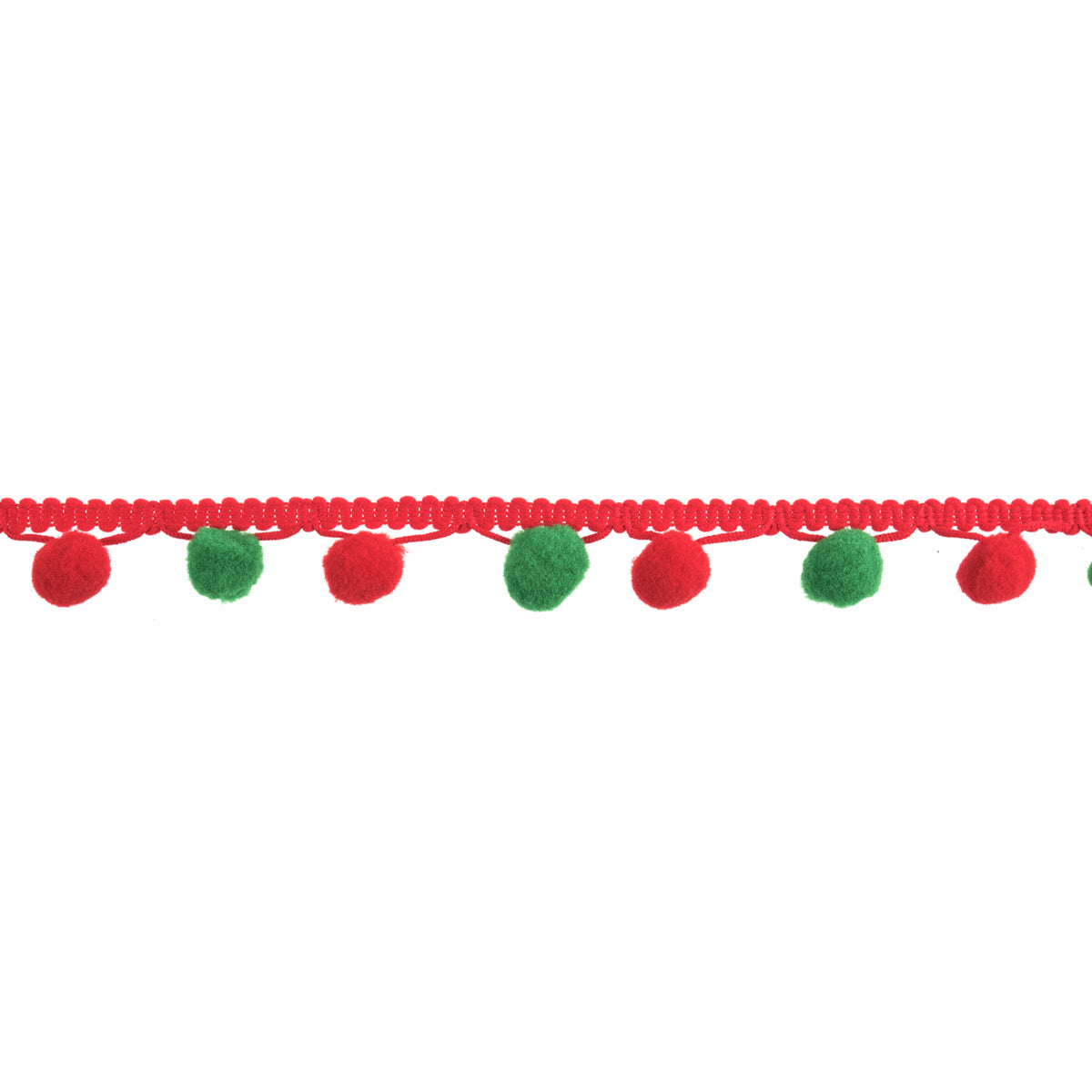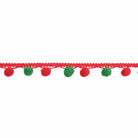 Get your pom pom on with this fun trim! Featuring soft little poms in festive green and red, it's great for adding a pop of colour and interest on everything from cushions to clothing. Use it to add some festive flair to a Christmas project like a stocking or cushion!