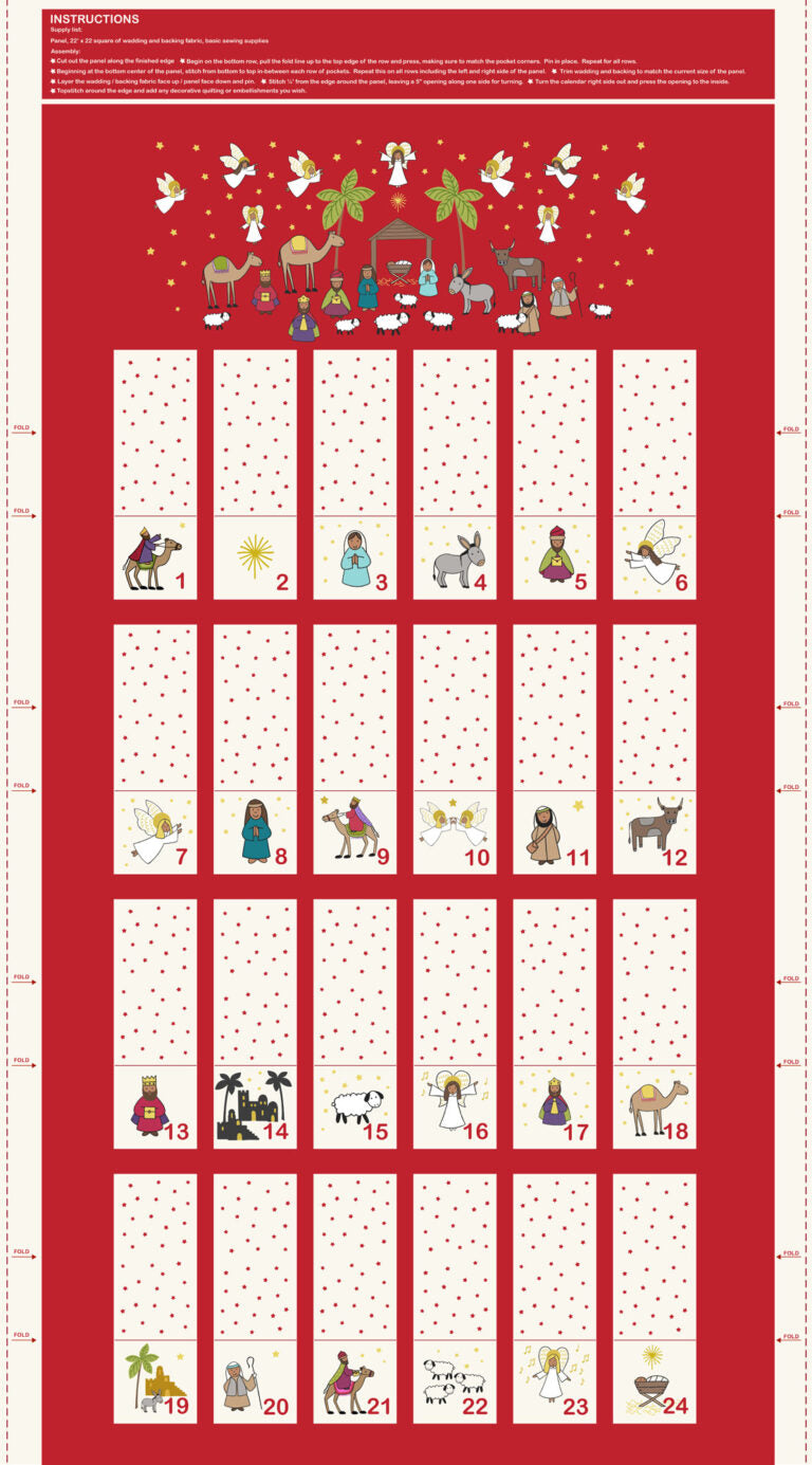Lewis & Irene Away in a Manger Advent Calendar Fabric Panel