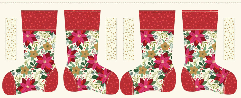 This fun fabric panel helps you create two sets of Christmas stockings, or one fully lined stocking. There's even extra pieces printed on the panel to use as hanging loops!