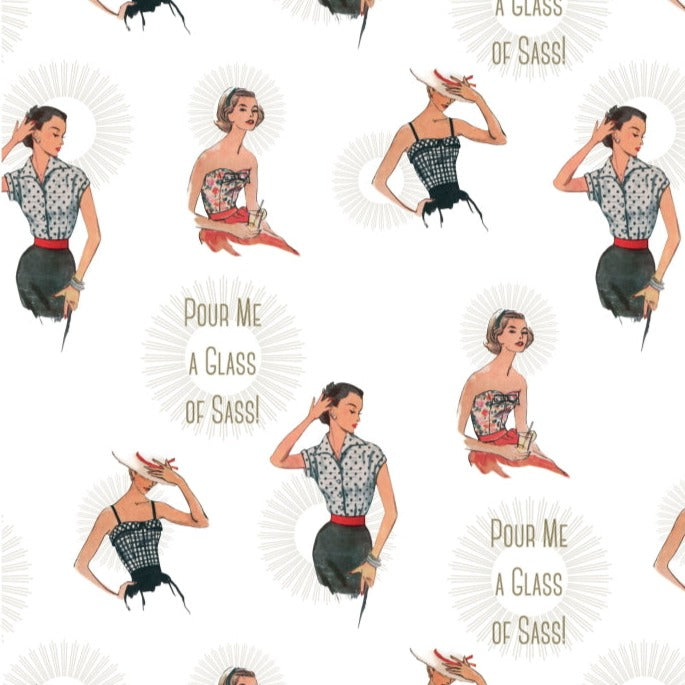 The Craft Cotton Co Simplicity Vintage All Dressed Up - Pour Me a Glass of Sass - 100% Cotton Fabric