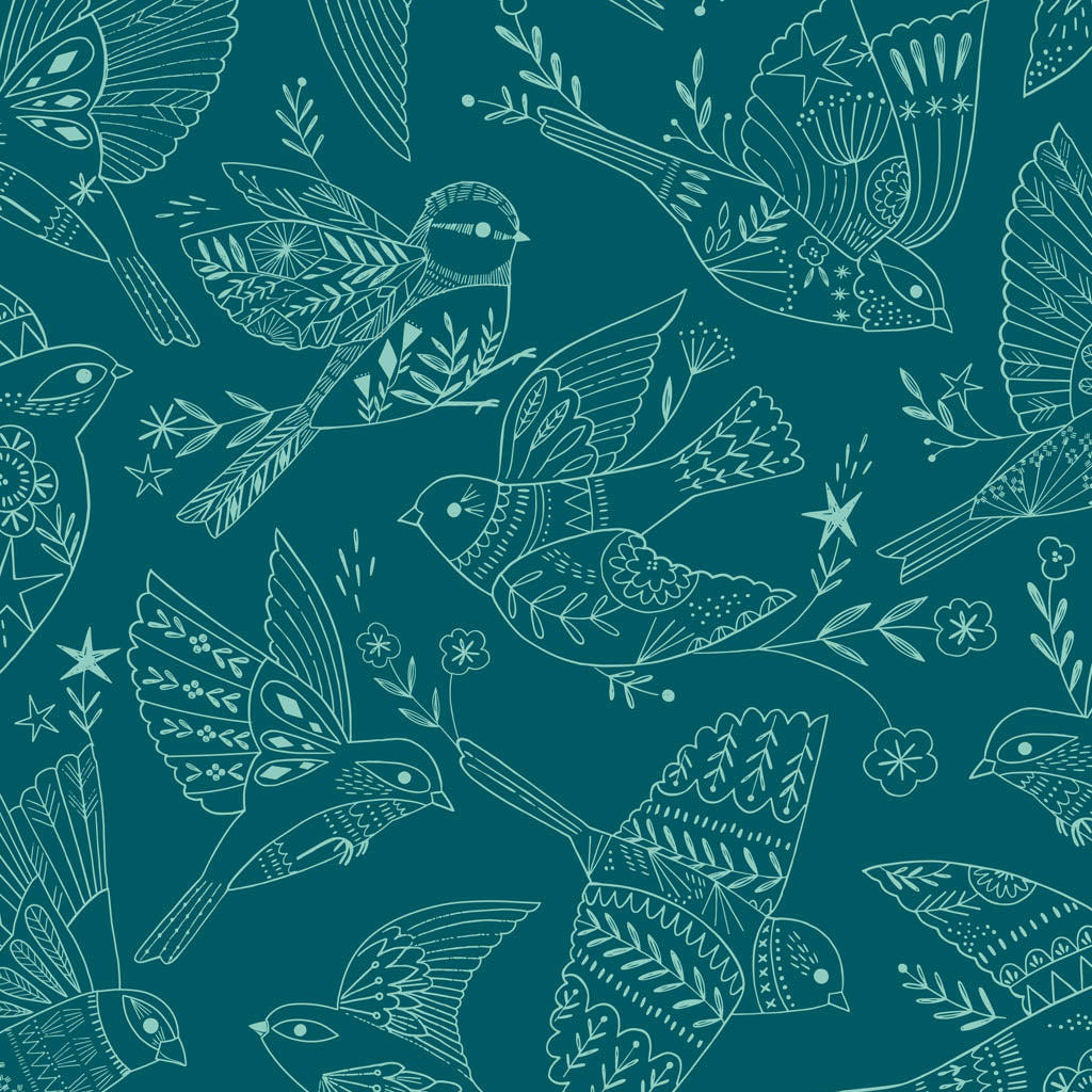 The garden goes wild with this pretty set of prints from the Aviary collection by Anbo. Set on a dark teal background, this stunning design features a flock of chirpy birds all in simple linework illustration for a beautiful effect. Perfect for a sophisticated quilt, accessory, cushion or even a gorgeous skirt or dress!