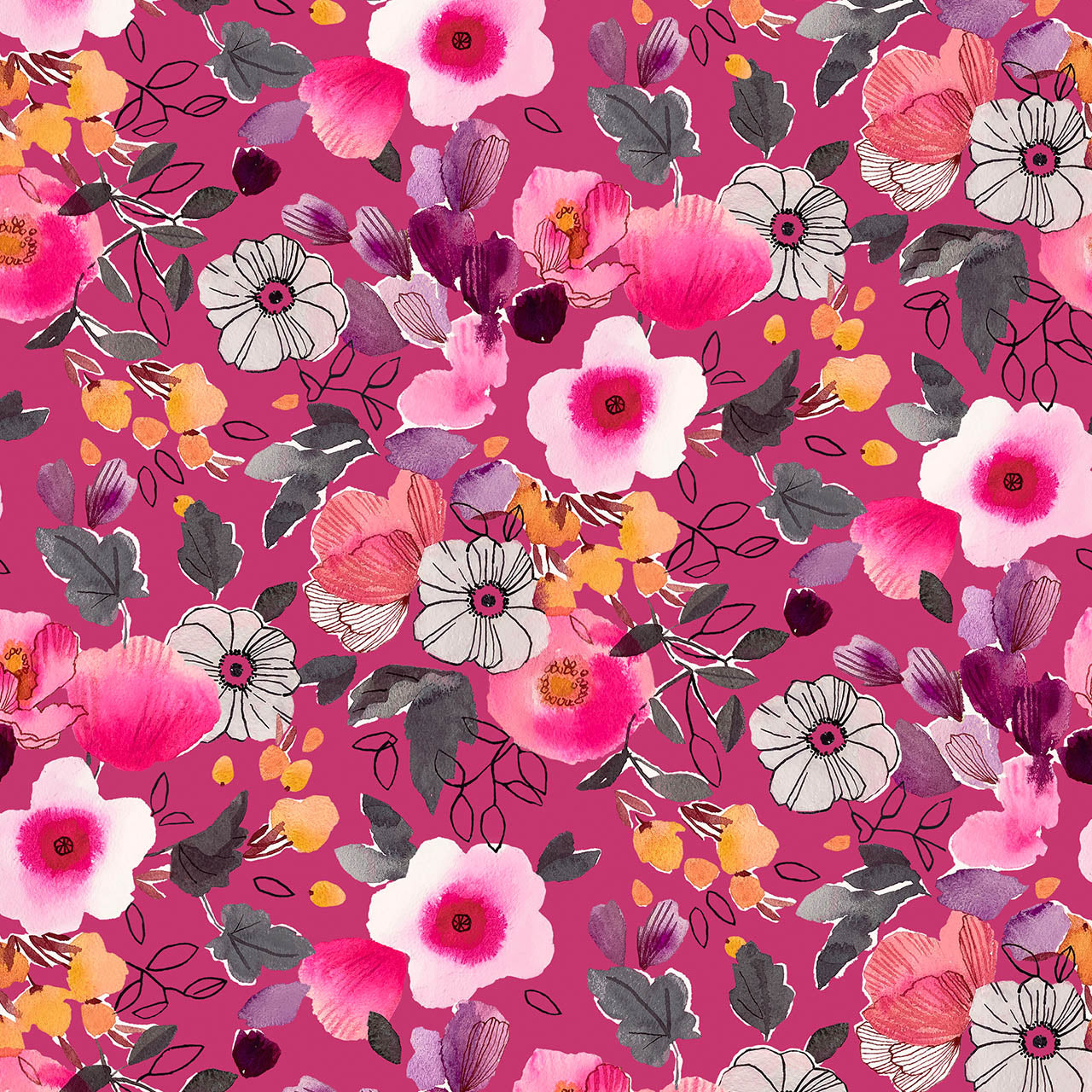 Dashwood Flora Flowerbeds Magenta Rayon Fabric