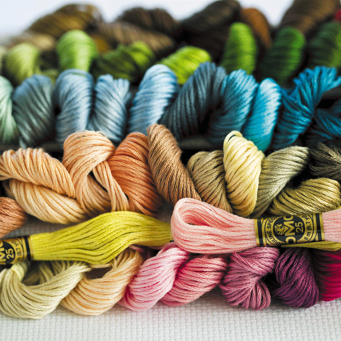 Choose from the full range of DMC embroidery threads, including regular stranded cotton in all colours, Satin thread, Colour Variations thread and Light Effects thread. If you need help colour matching, please just specify in the order notes on your order and we will do our best to help.