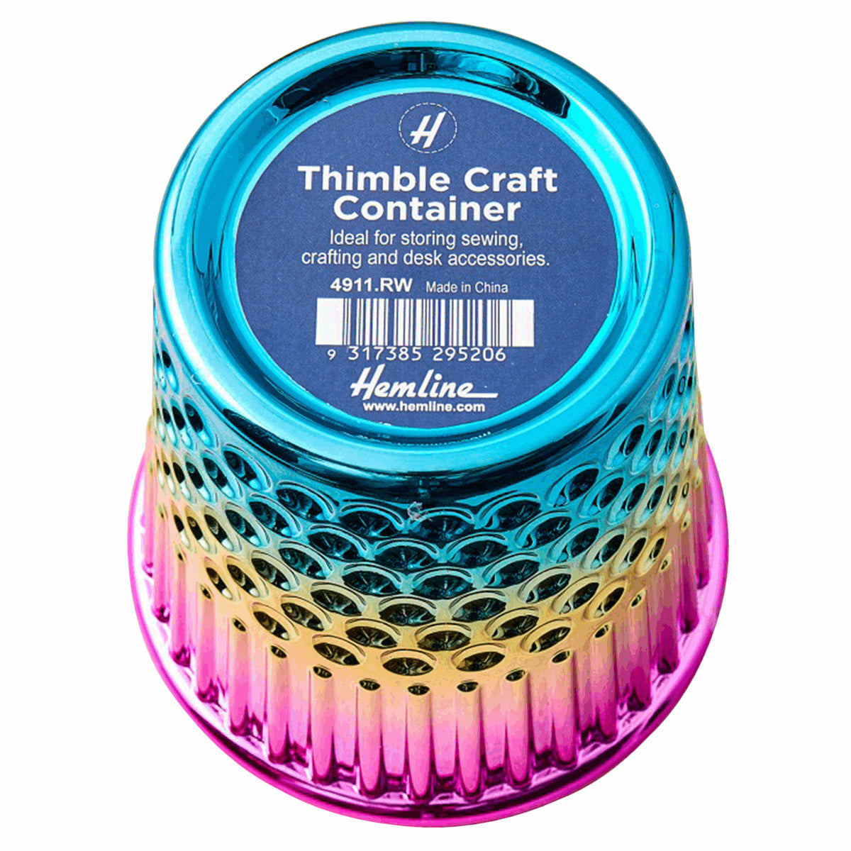 Keep your craft space neat and tidy with this colourful organiser! Made to look like a giant thimble and finished in a colourful metallic rainbow effect, it's perfect for adding style to your space as well as organising your equipment. They're great for storing scissors and rotary cutters!