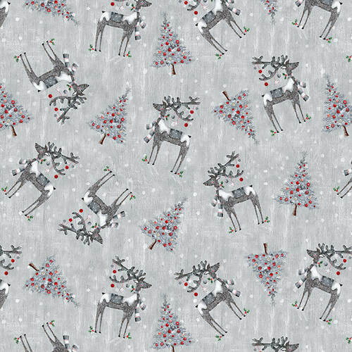 Celebrate the joy of Christmas with this gorgeous scandi-style collection from Blank Quilting. How sweet is this mottled reindeer print, featuring the gentle creatures exploring among the Christmas trees, all adorned with delicate red baubles for that festive feeling. Great for stockings, quilts, cushions and more!