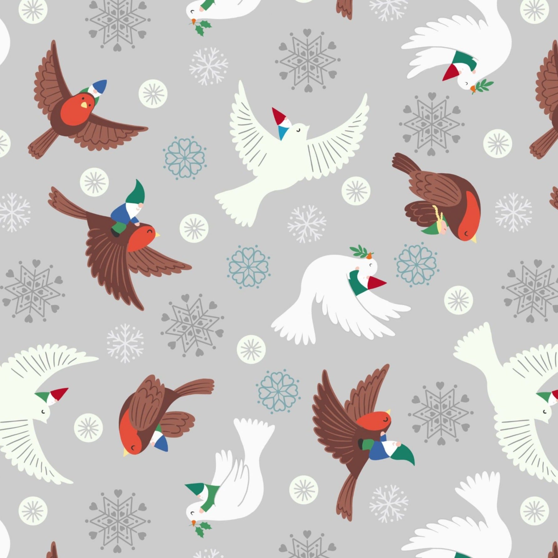 Discover a new kind of scandi collection with this extra special glow in the dark Christmas collection from Lewis and Irene. All the prints are finished with amazing glow-in-the-dark elements so when you switch the lights off, you'll still be able to see those cute festive designs. Cute tiny tomten (festive gnomes) climb aboard robins and winter doves in this fun festive design, riding them through the snowflakes like they're horses!