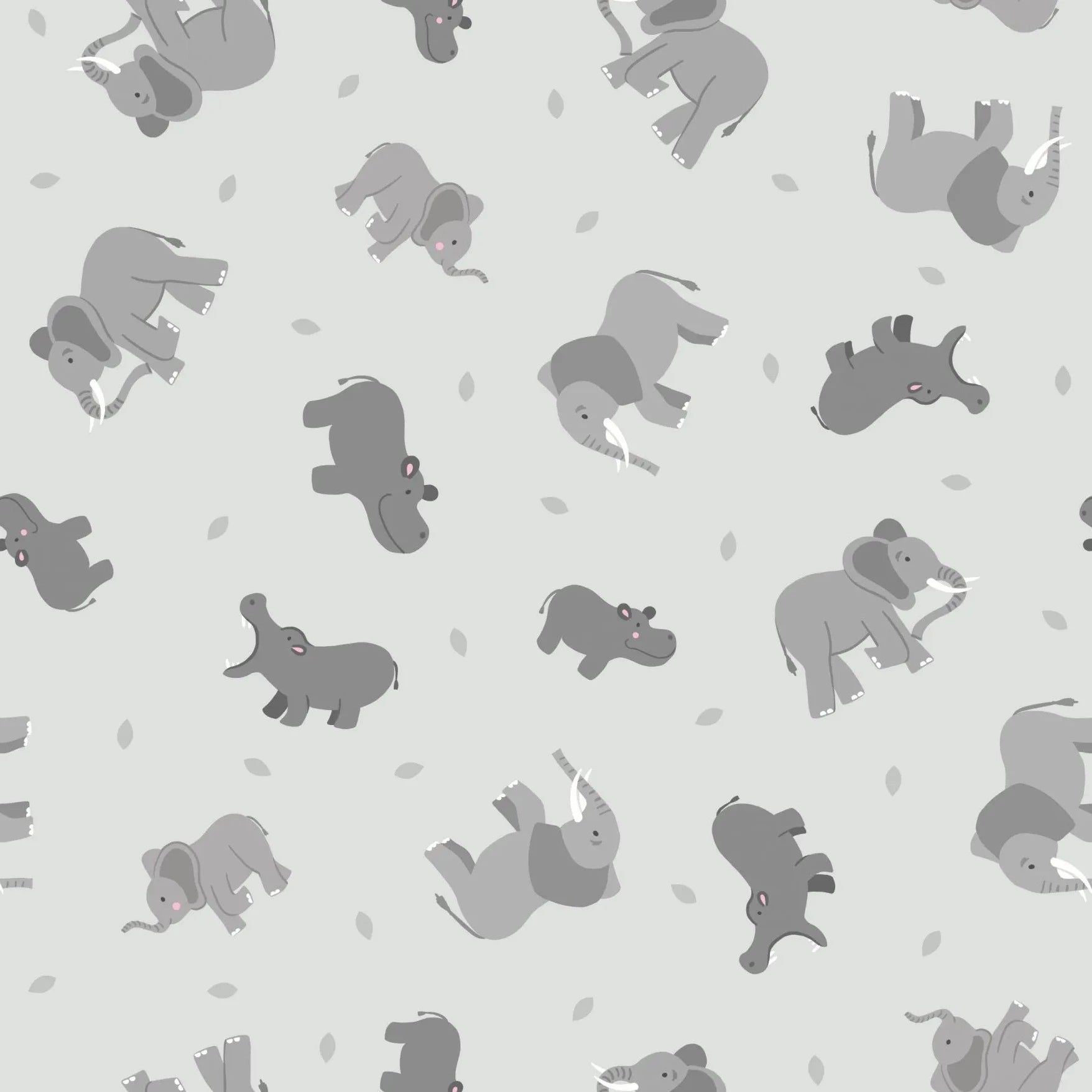 Lewis & Irene Small Things Wild Animals - Elephants & Hippos Light Grey - 100% Cotton Fabric