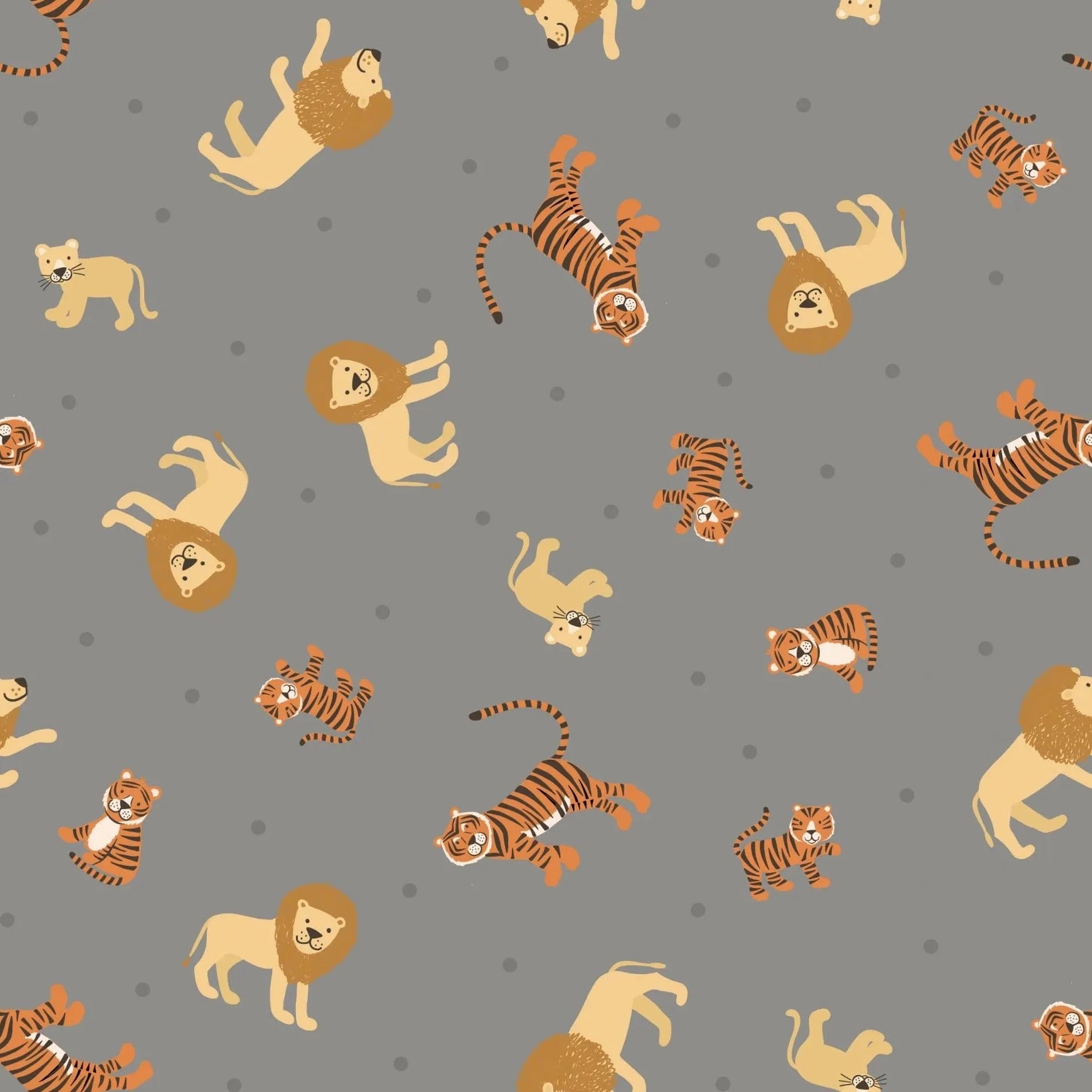 Lewis & Irene Small Things Wild Animals - Lions & Tigers Grey - 100% Cotton Fabric