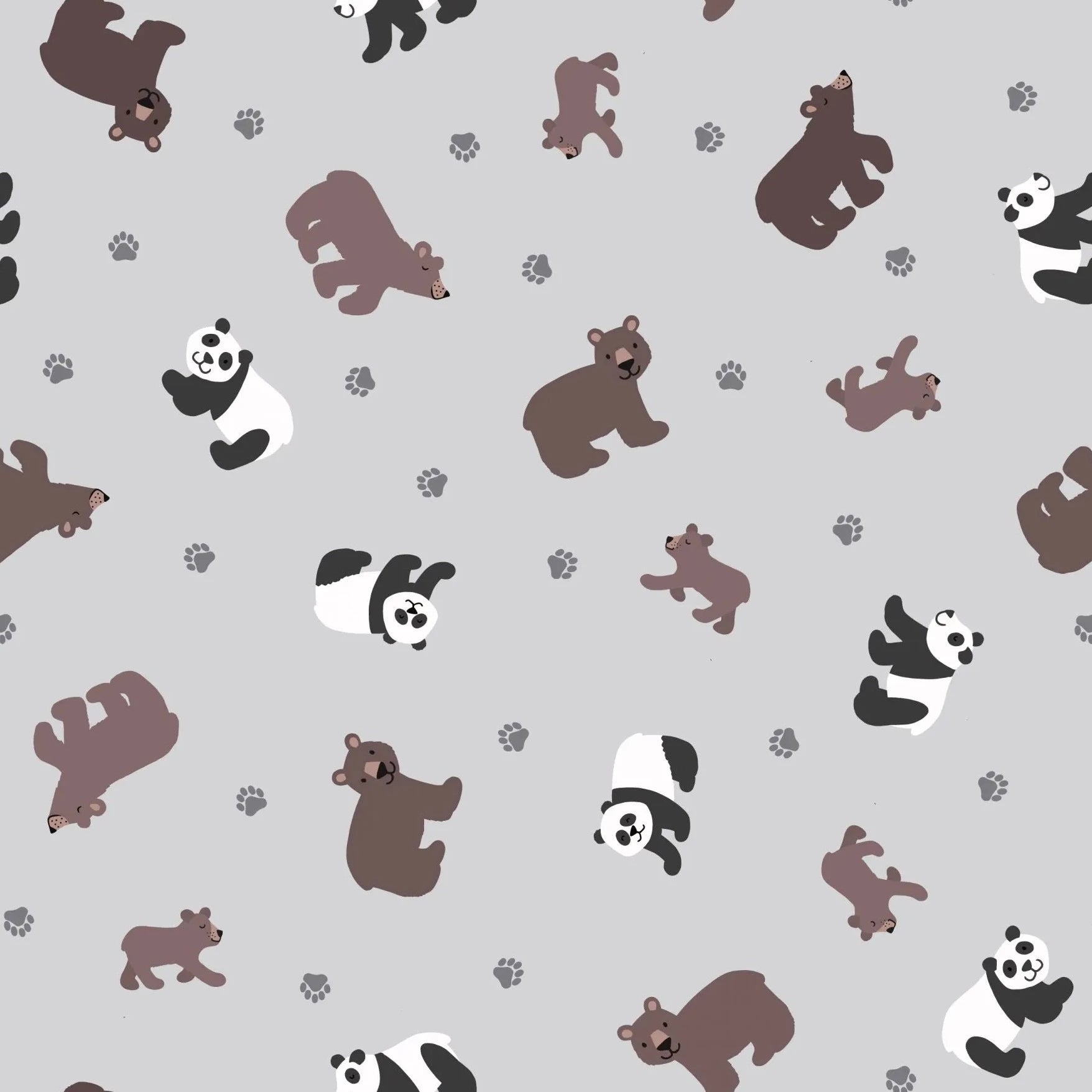 Lewis & Irene Small Things Wild Animals - Pandas & Bears Light Grey - 100% Cotton Fabric