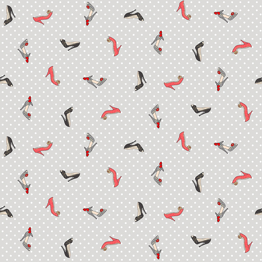 Inspired by a love of pampering, whether that be a little makeover or a spot of shopping, comes the Pamper collection from Makower. Finished in a chic colour palette of grey, pink and red, this glamorous set of prints is one for all the pamper lovers out there! This cute print is for all those with a small shoe addiction... celebrating all our favourite types of footwear! Finished with metallic gold accents for that extra special touch.