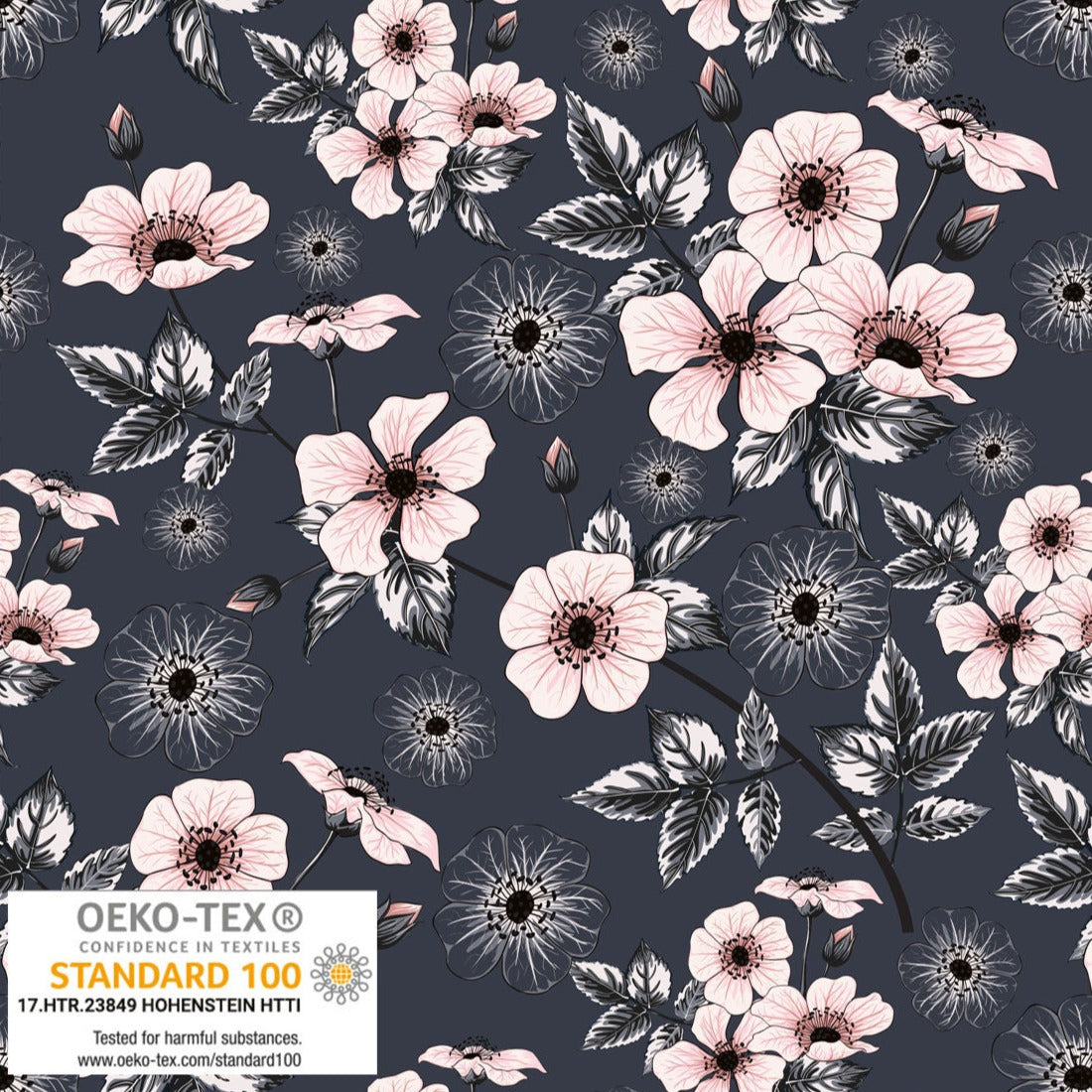 Stof of Denmark Poppies Grey/Pink Avalana Jersey Fabric
