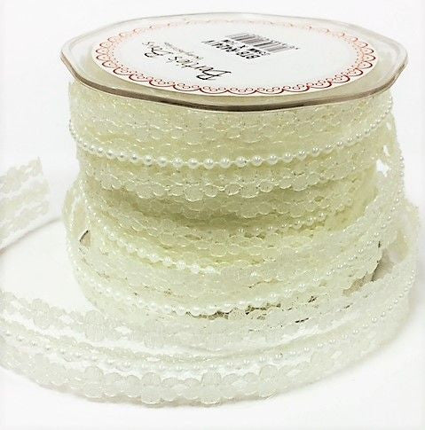 20mm Ivory Beaded Lace Ribbon