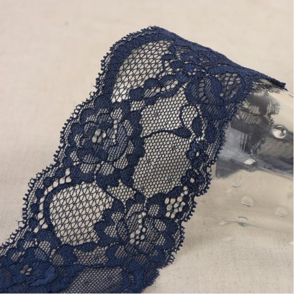 Finish off your garments with some soft stretch lace. This pretty floral-design lace is ideal for trimming on lingerie, headbands, leggings or even wedding items.
