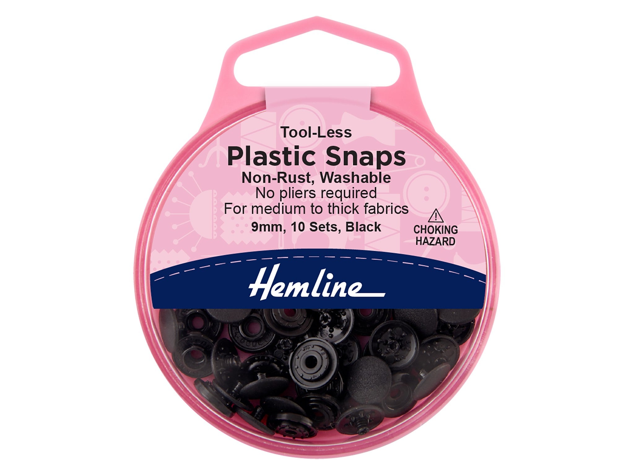 Hemline 9mm No-Tool Plastic Snap Fasteners - Black