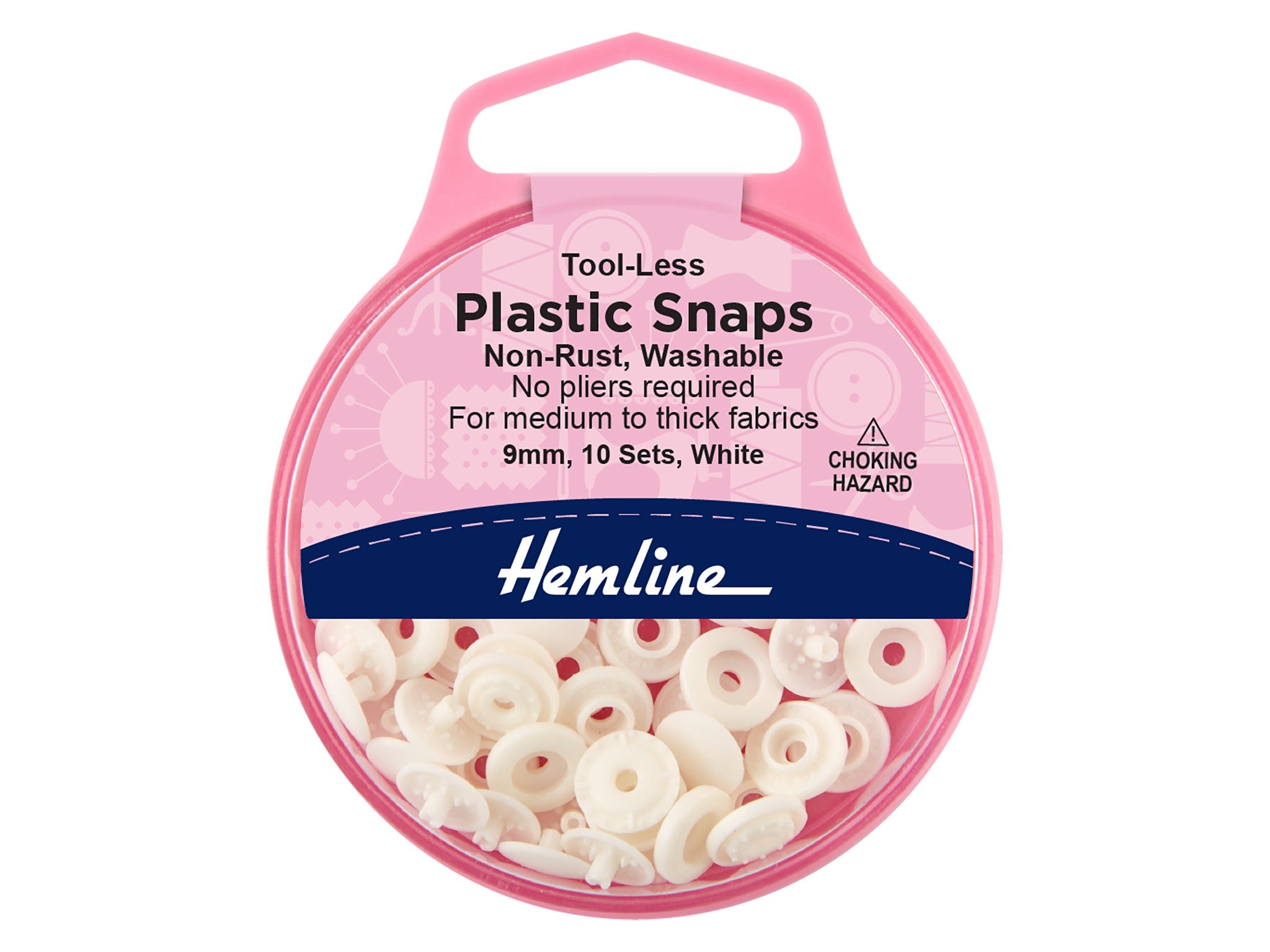 Hemline 9mm No-Tool Plastic Snap Fasteners - White