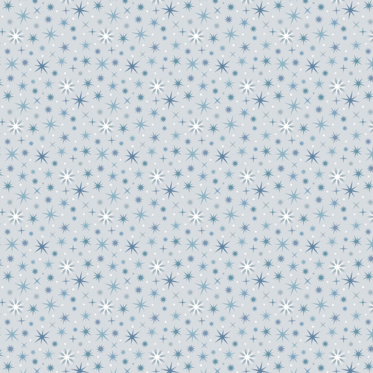 Lewis & Irene A Winter's Moon - Twinkling Stars Light Silver (pearlised) - 100% Cotton Fabric