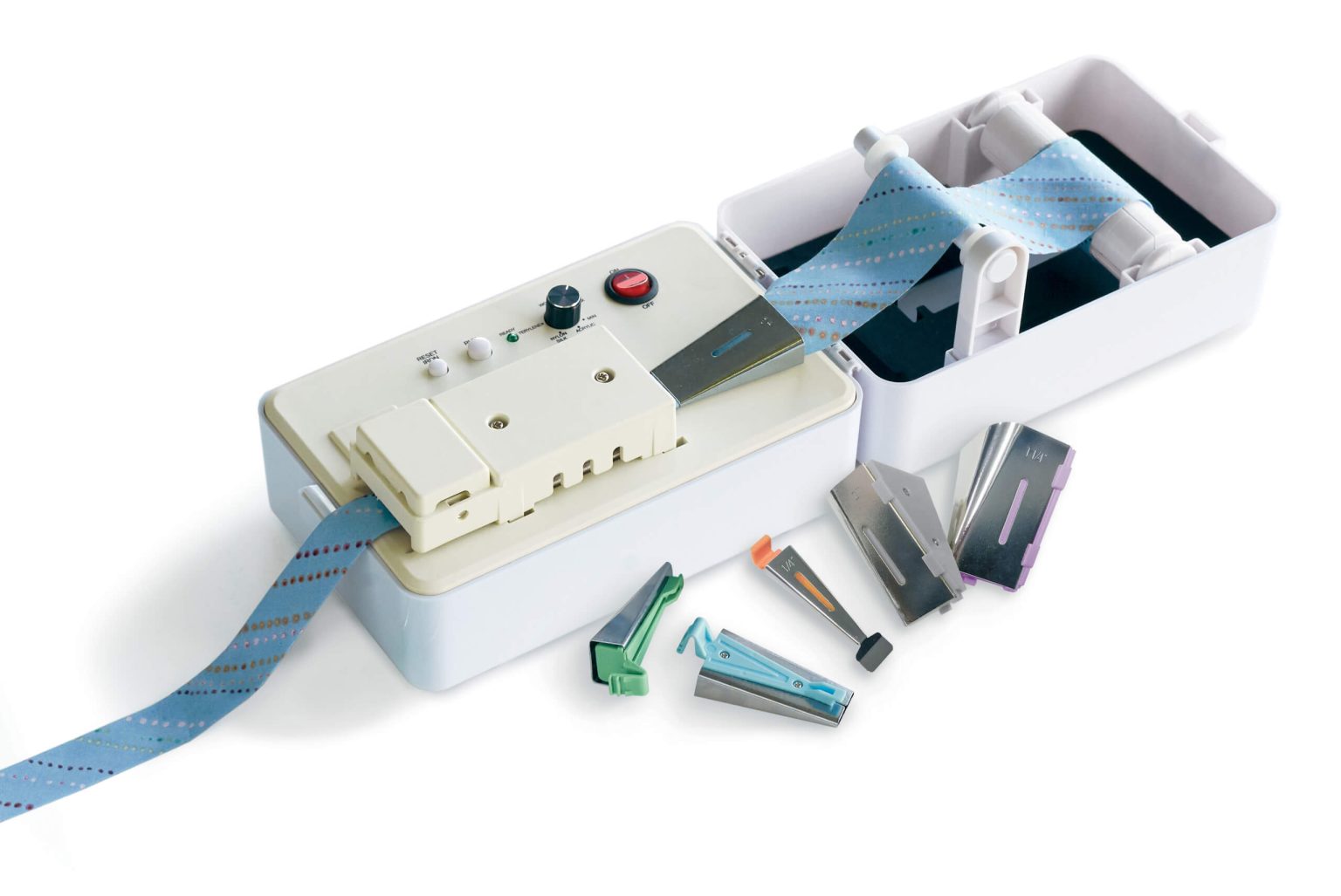 This easy to use machine folds and irons fabric strips into customised bias tape and blanket binding. Simply cut strips from the fabric to match your project, feed through the tip and under the ironing plate and push the start button.