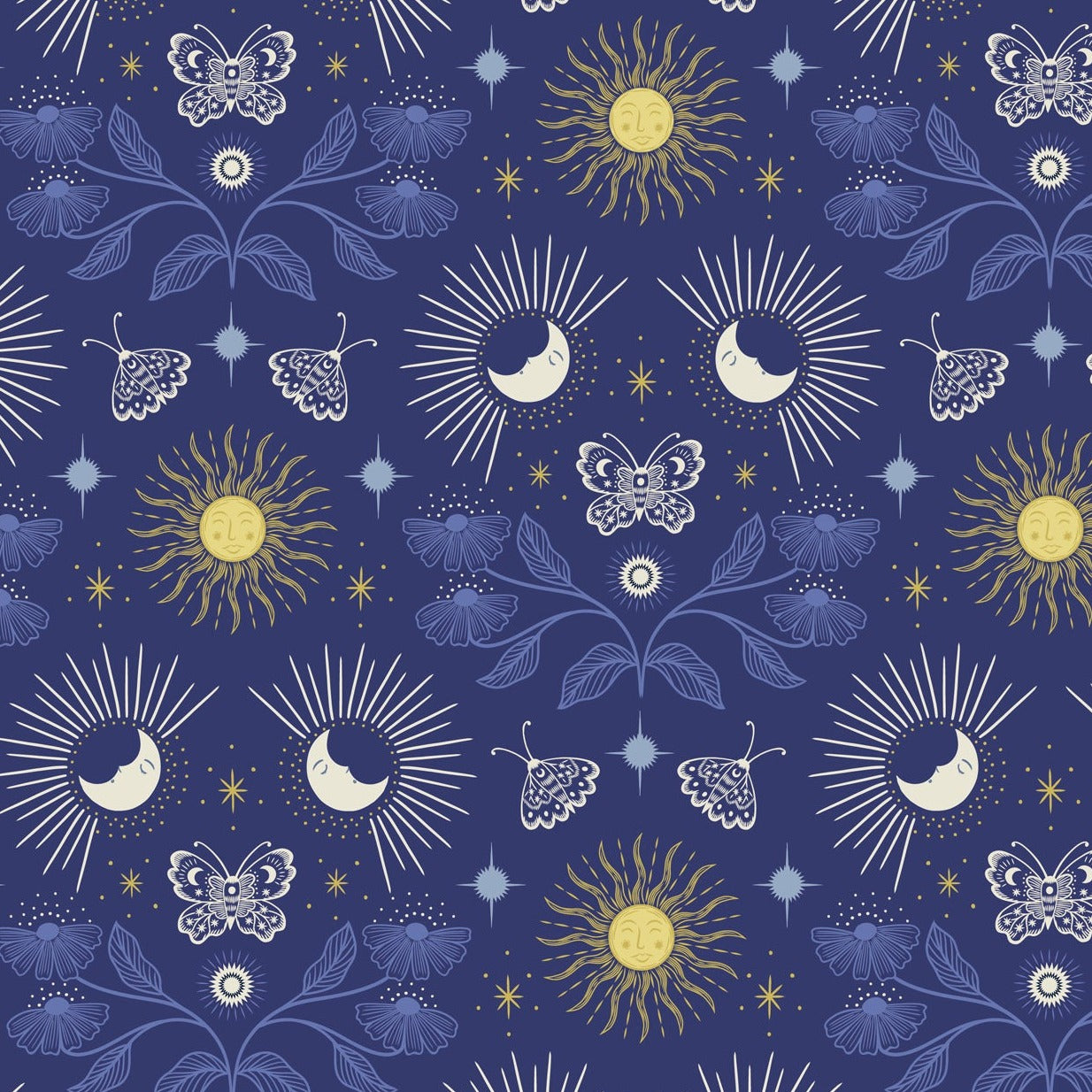 Lewis & Irene Celestial - Celestial Garden Dusk/Gold (metallic) - 100% Cotton Fabric