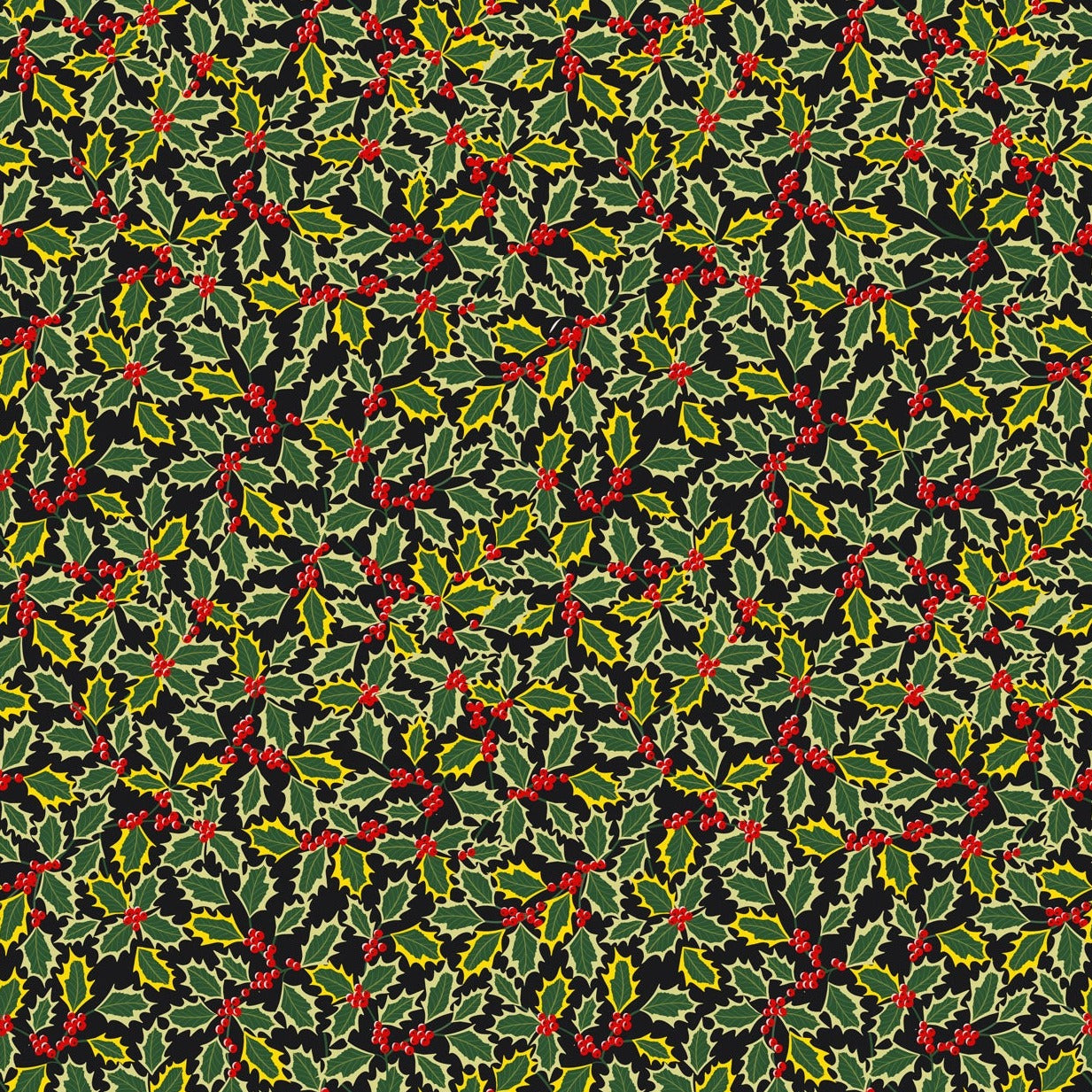 Lewis & Irene Yuletide - Holly Black (metallic) - 100% Cotton Fabric