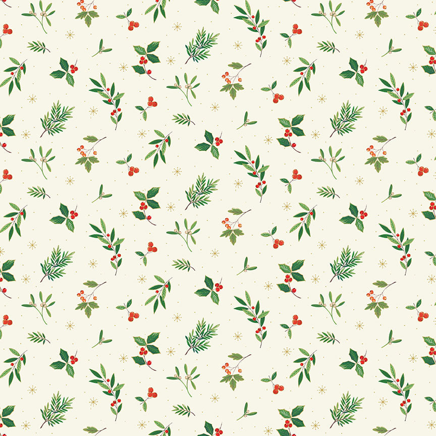Makower Christmas 2022 Festive Foliage - Scatter Cream (metallic) - 100% Cotton Fabric