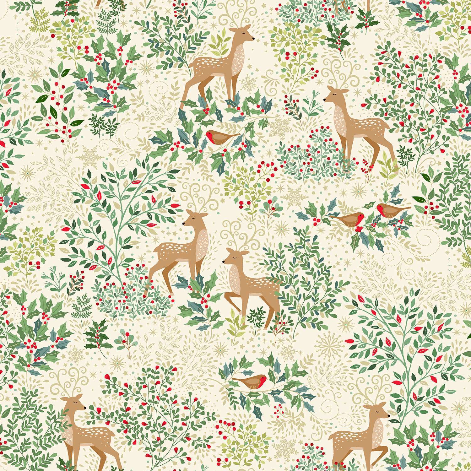 Find yourself enchanted by this delicate range of Christmas prints from Makower for 2024. Centred around the forest at Christmas time, it features lots of gorgeous greens, creams and reds, alongside nature-inspired prints. The designs are set off with a delicate metallic gold finish for a little extra sparkle too!
