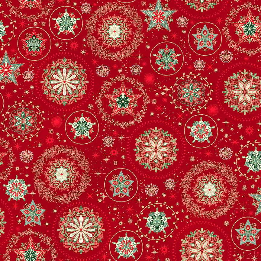 Makower Good Tidings - Crystal Red (metallic) - 100% Cotton Fabric