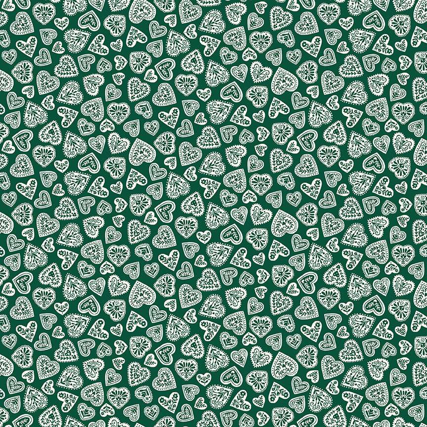 Makower Scandi - Hearts Green - 100% Cotton Fabric