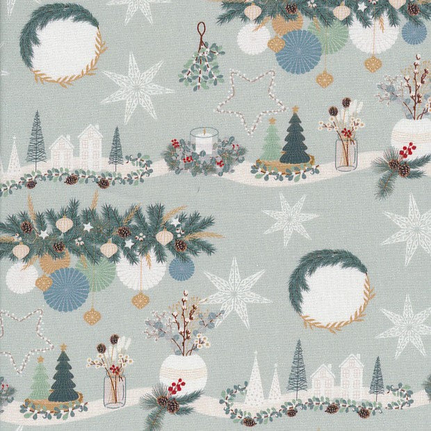 Christmas gets cosy with this festive collection designed by Victoria Louise Designs for Craft Cotton Co. It's all about bringing the outside in, with lots of foliage and soft green shades. This centrepiece print offers something a bit different for festive projects with style!